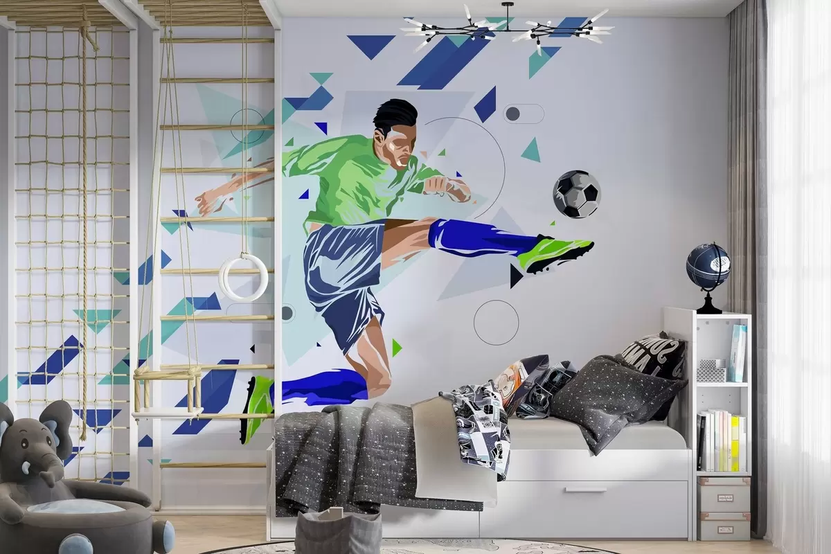 Stenske poslikave nogometaš, ki brcne žogo Št. w02401