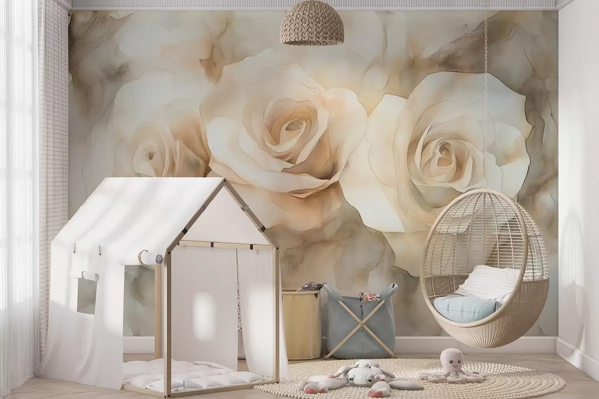 Stenske poslikave Lepe vrtnice, akvarelni slog, bež barve, boemski Št. w02492