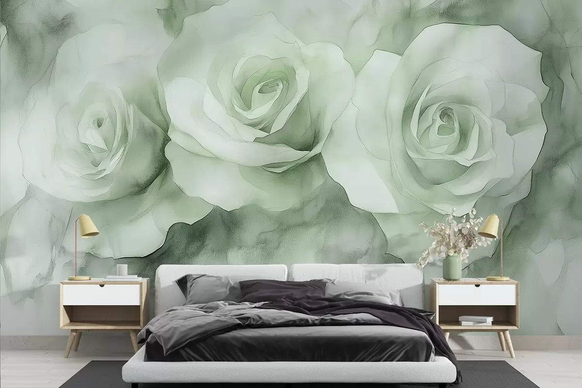 Stenske poslikave Lepe vrtnice, akvarelni slog, zelene barve, boemski Št. w02492v2