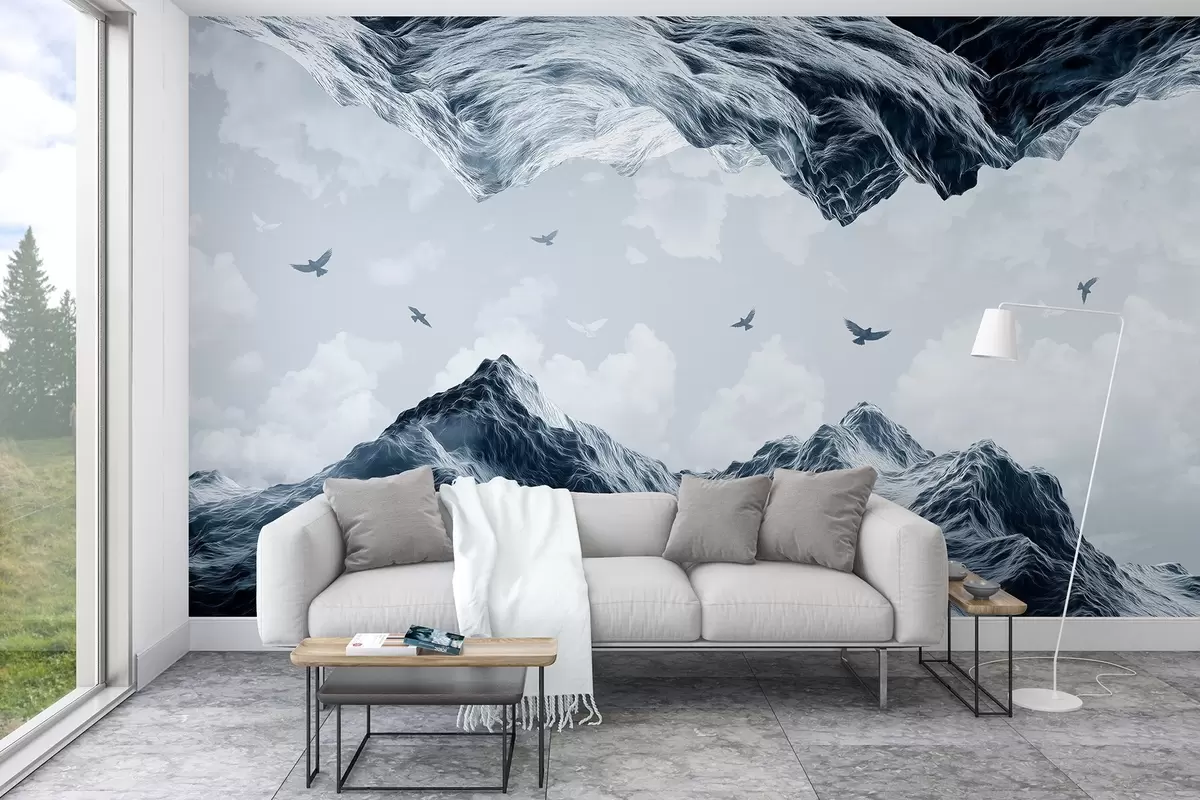 Stenske poslikave Gore pokrajina, realizem, leteče ptice, narava, oblaki, modre barve Št. w02514v1