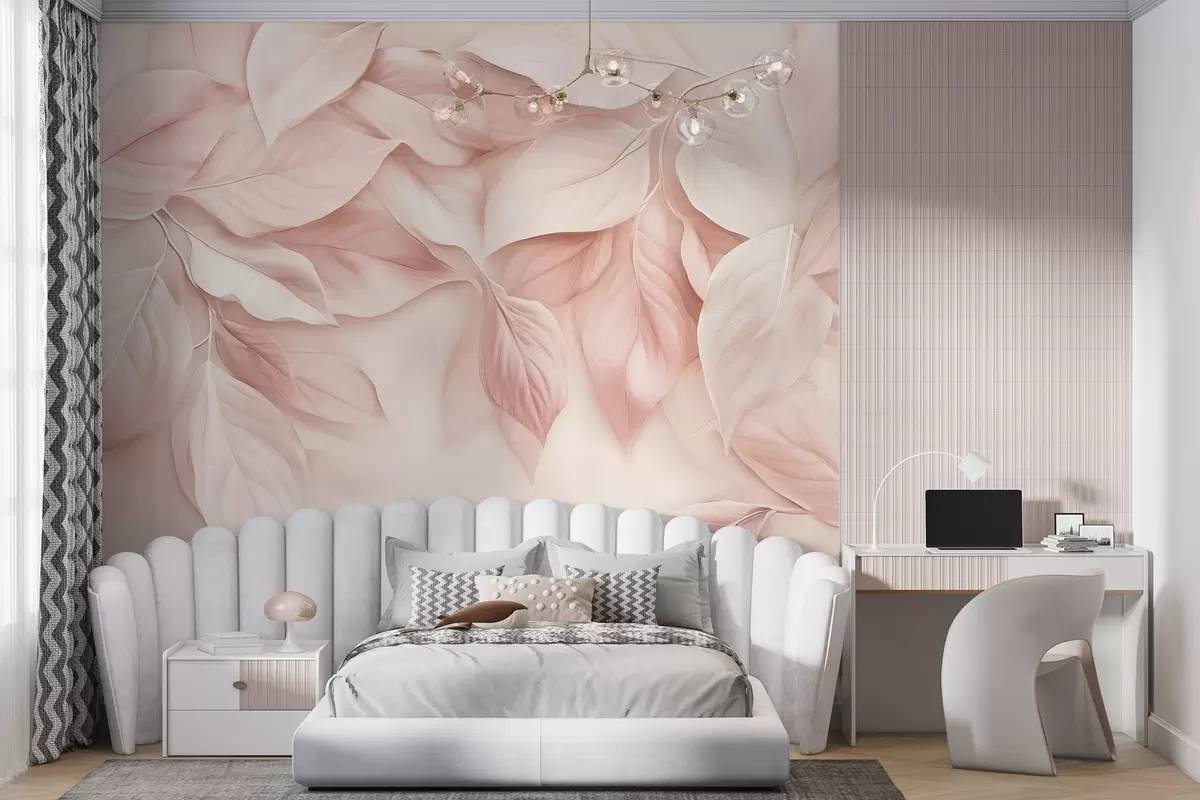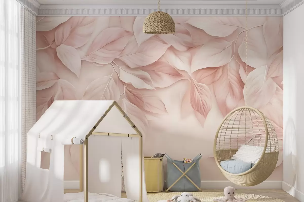 Stenske poslikave nežni roza listi za dekliško spalnico Št. w02549