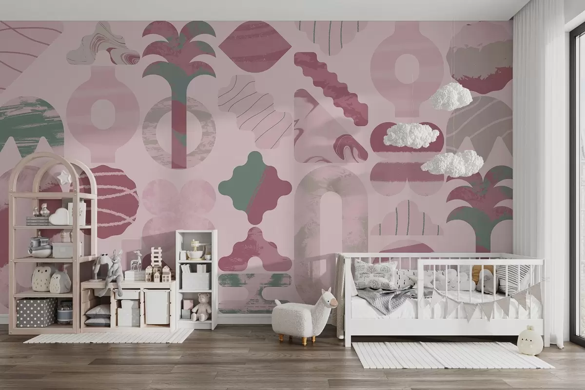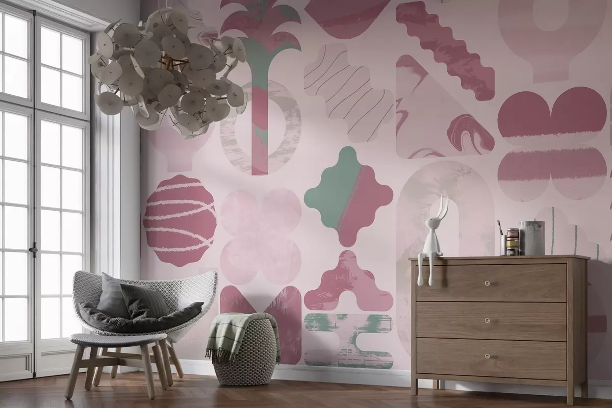 Stenske poslikave različne zanimive oblike, sodobna geometrija v rožnatih barvah Št. w02550