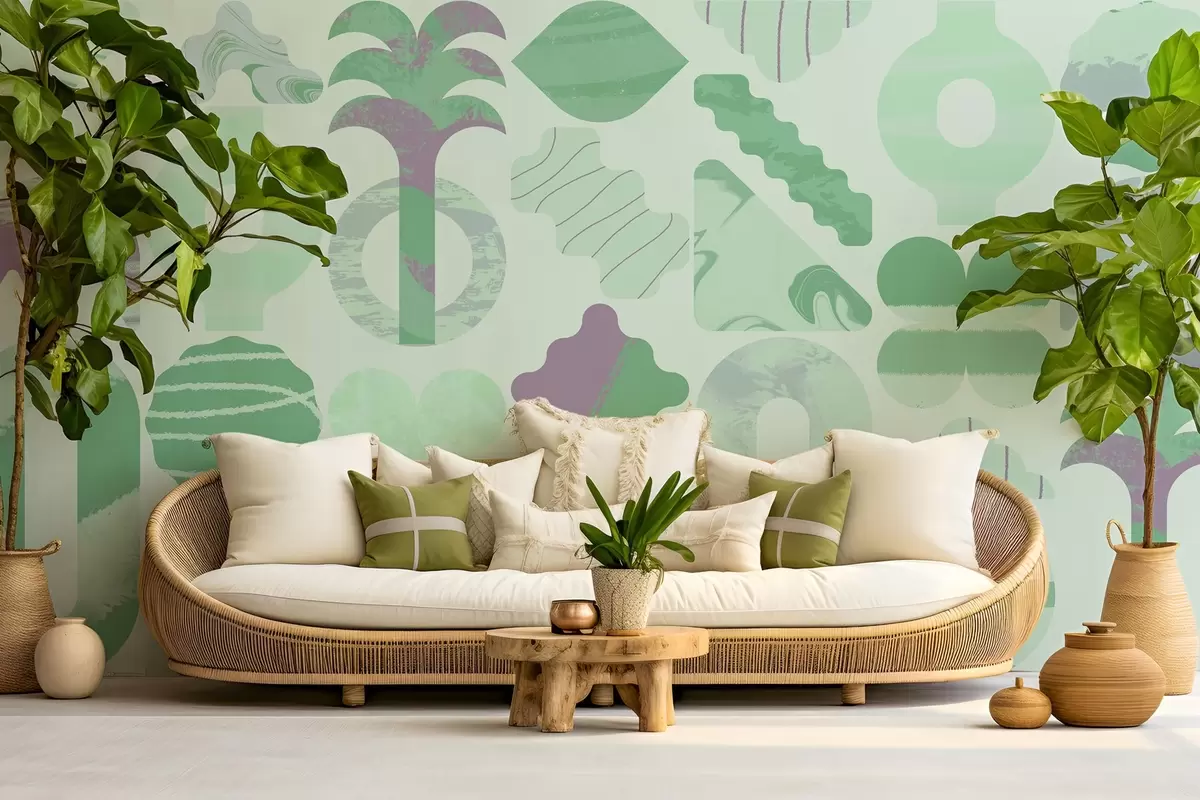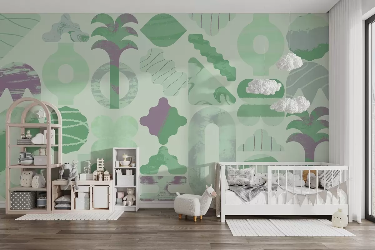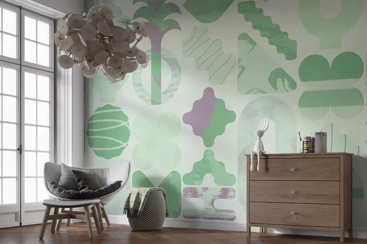 Stenske poslikave različne zanimive oblike, sodobna geometrija v zelenih barvah Št. w02550v2