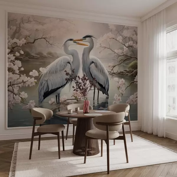 Stenske poslikave Par štorkelj na cvetočem vrtu Št. w02621
