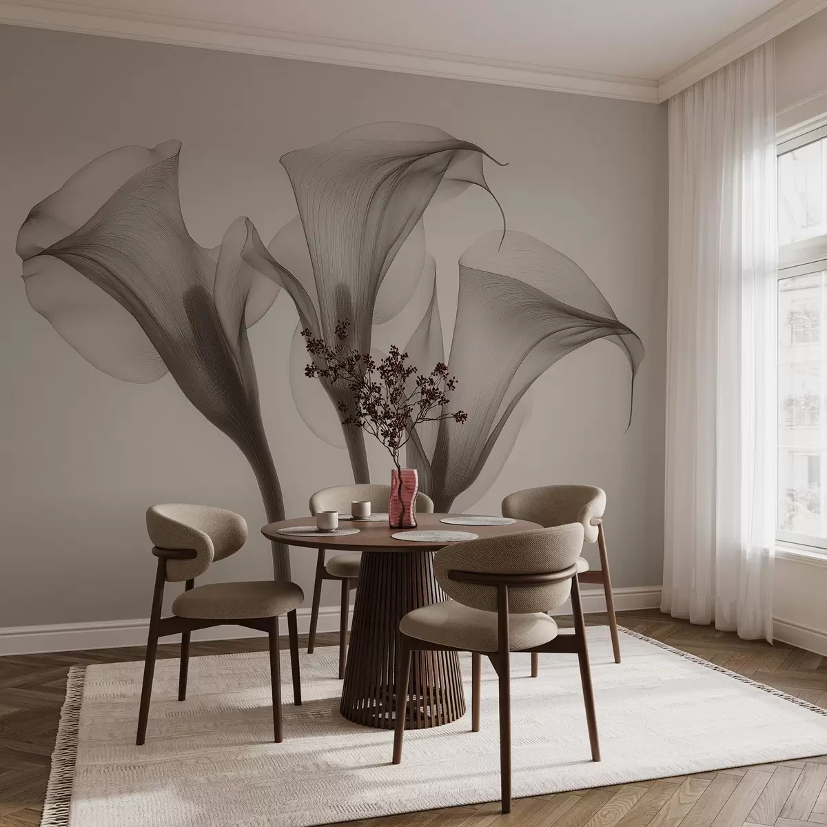Stenske poslikave zračni prozorni cvetovi Zantedeschia v bež odtenkih Št. w02632