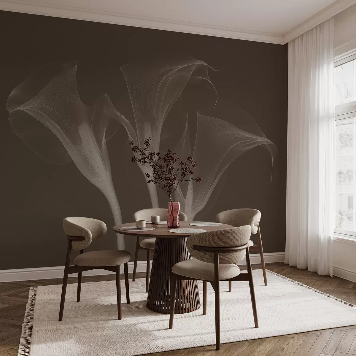 Stenske poslikave zračni prozorni cvetovi Zantedeschia na temnem ozadju Št. w02632v1