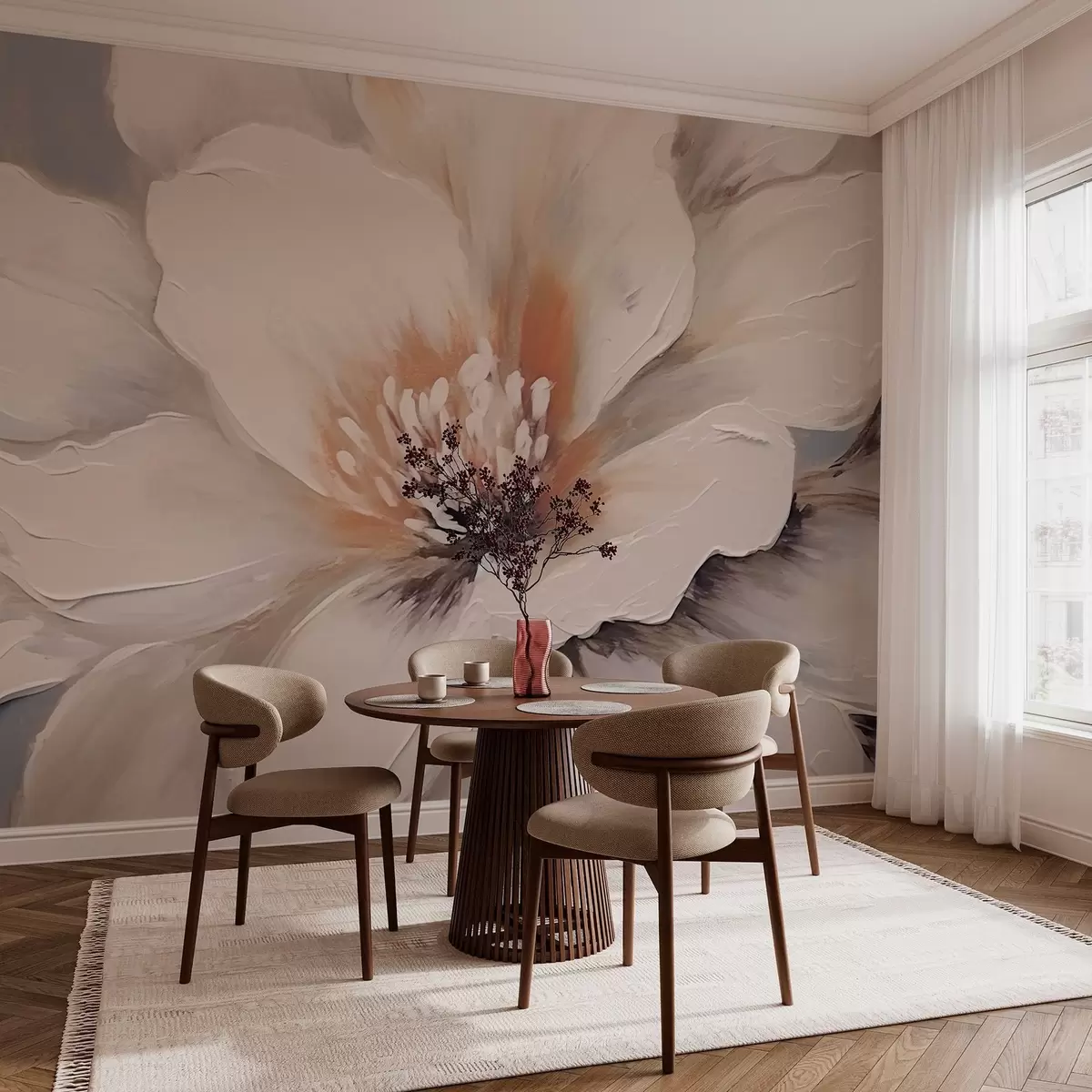 Stenske poslikave Abstraktna bela roža na sivem ozadju Št. w02702