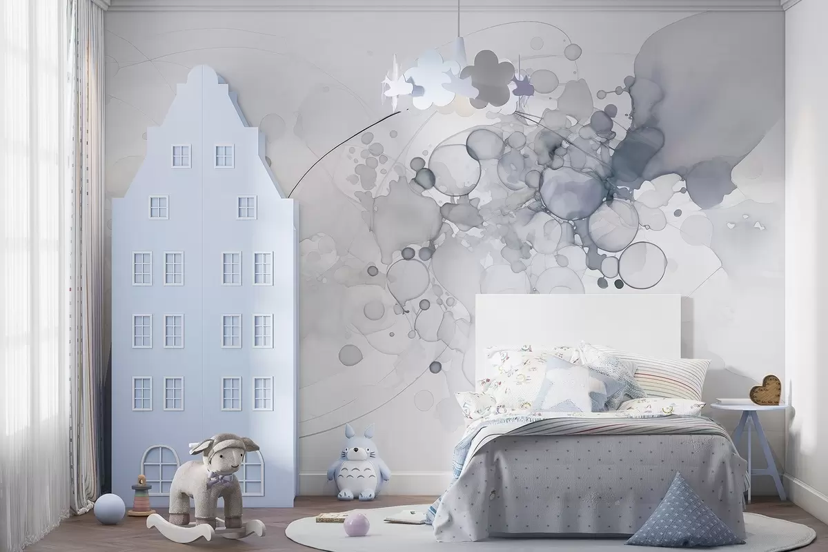 Stenske poslikave Abstraktna tekoča umetnost, akvarelni slog, sive barve Št. w02746v1