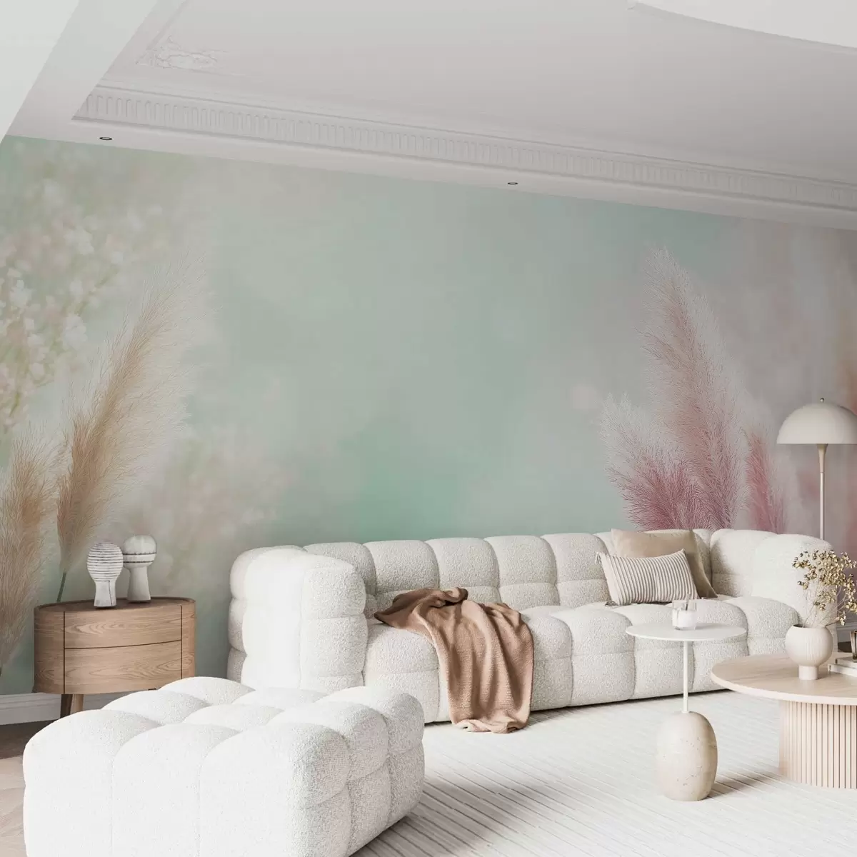 Stenske poslikave trava pampas na nežnem turkiznem ozadju Št. w02766