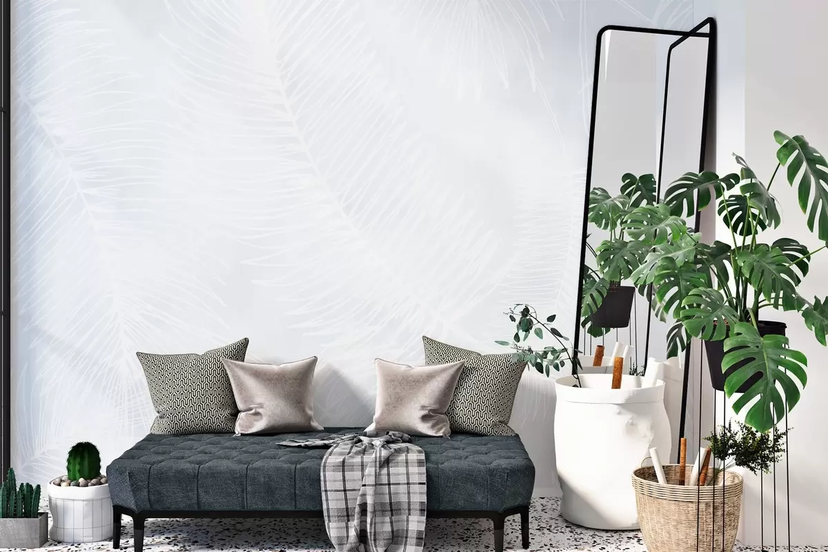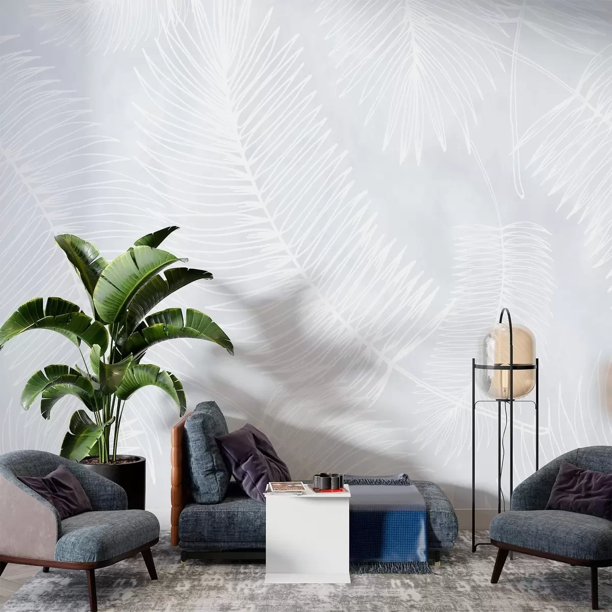Stenske poslikave Silhuete belih listov na teksturiranem ozadju Št. w02894v1