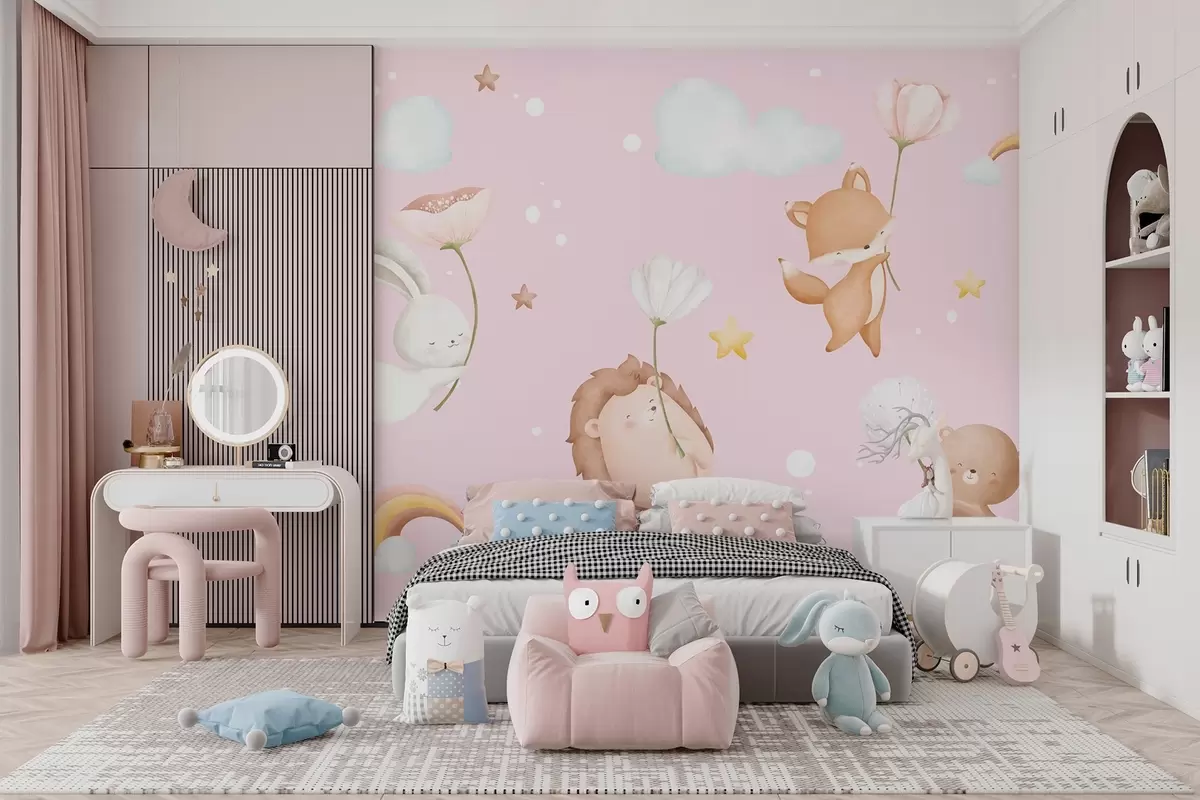 Stenske poslikave Živali s cvetjem na rožnatem ozadju Št. w02897