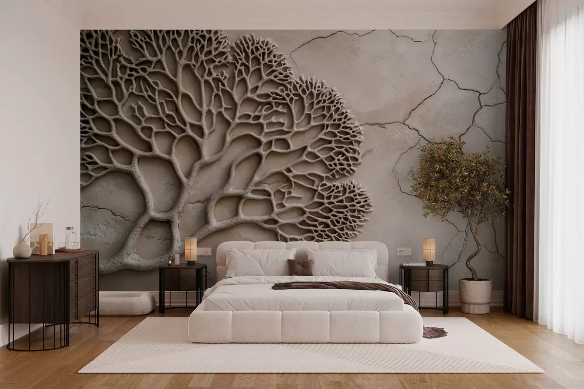 Stenske poslikave Ozadje v reliefnem slogu z lesom in razpokami Št. w02908