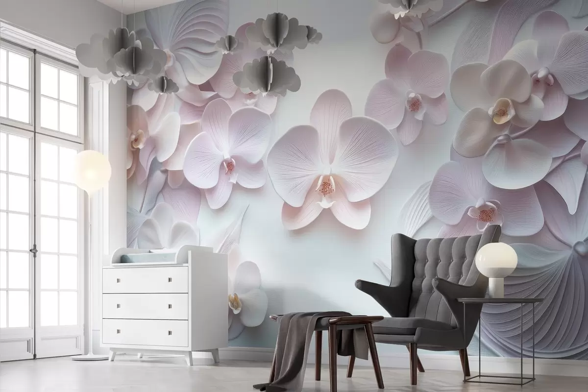 Stenske poslikave Nežni cvetovi archidia v svetlih barvah s 3D imitacijo Št. w02912