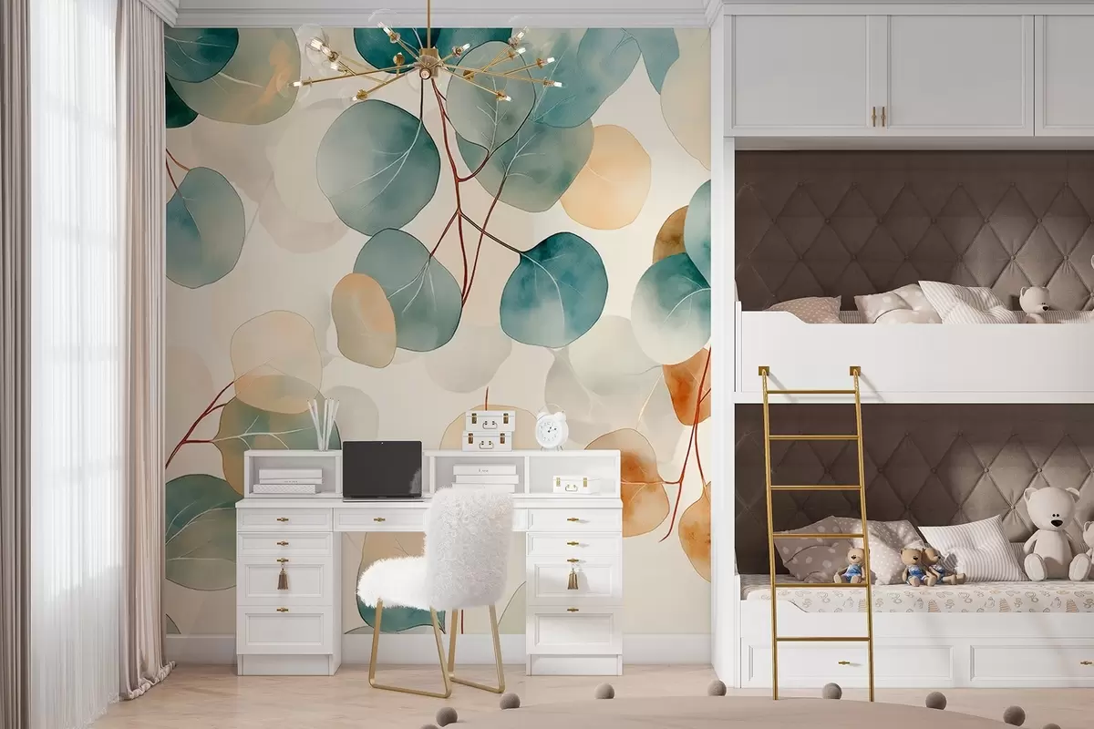Stenske poslikave Risba evkaliptusa v akvarelnem slogu, mehke pastelne barve, cvetlična Št. w02938