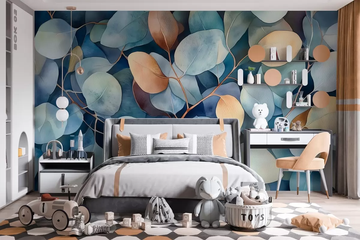 Stenske poslikave Lepi evkaliptusovi listi, cvetlični vzorec, risba v akvarelnem slogu Št. w02939