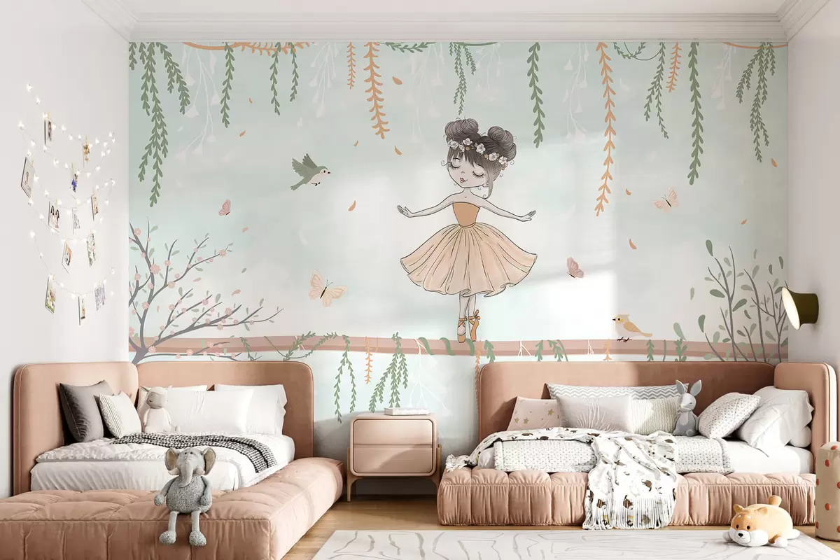 Stenske poslikave Pokrajina s princeso s pticami in metulji Št. w03003v1