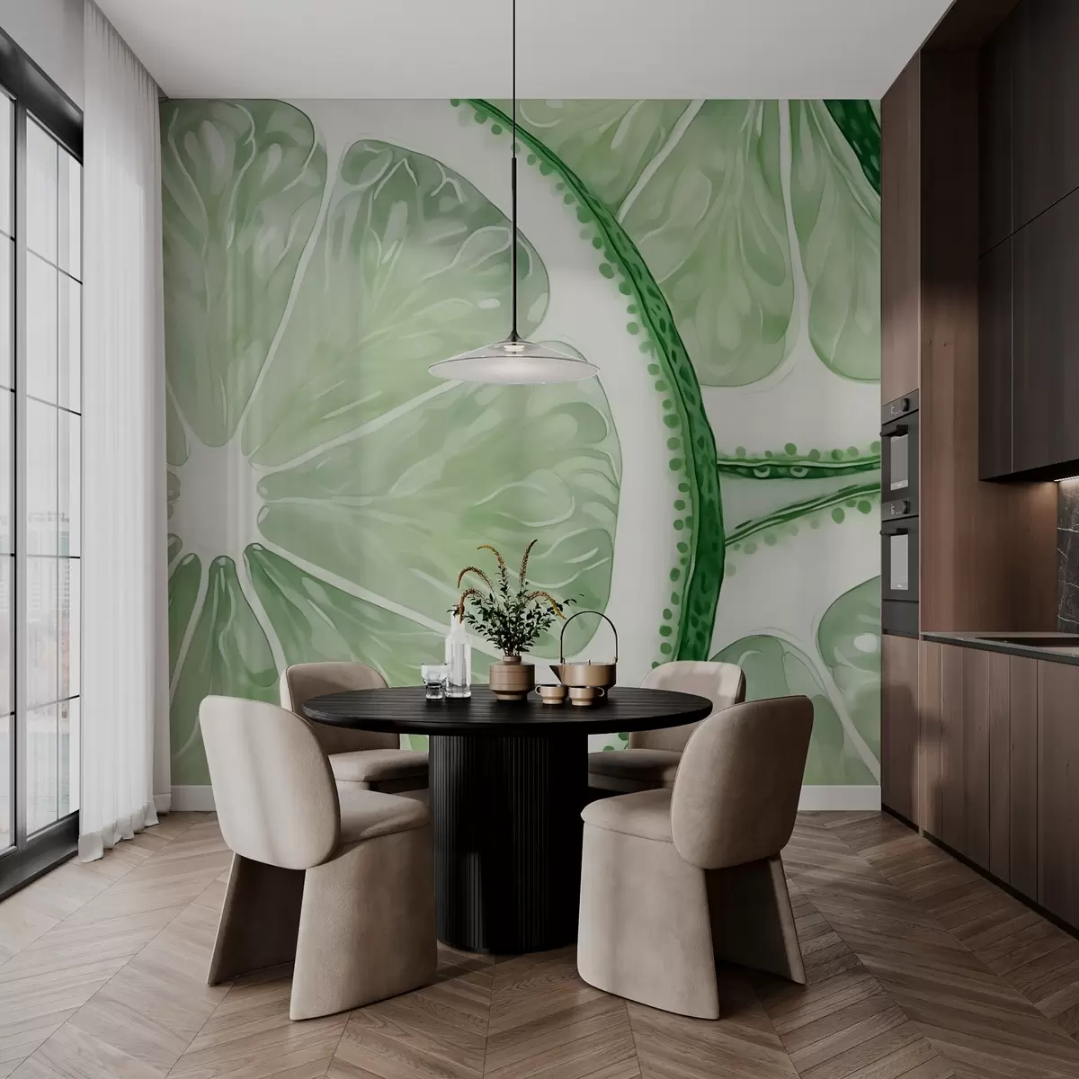 Stenske poslikave Citrusni krogi imitacija akvarelno zelenega odtenka Št. w03026