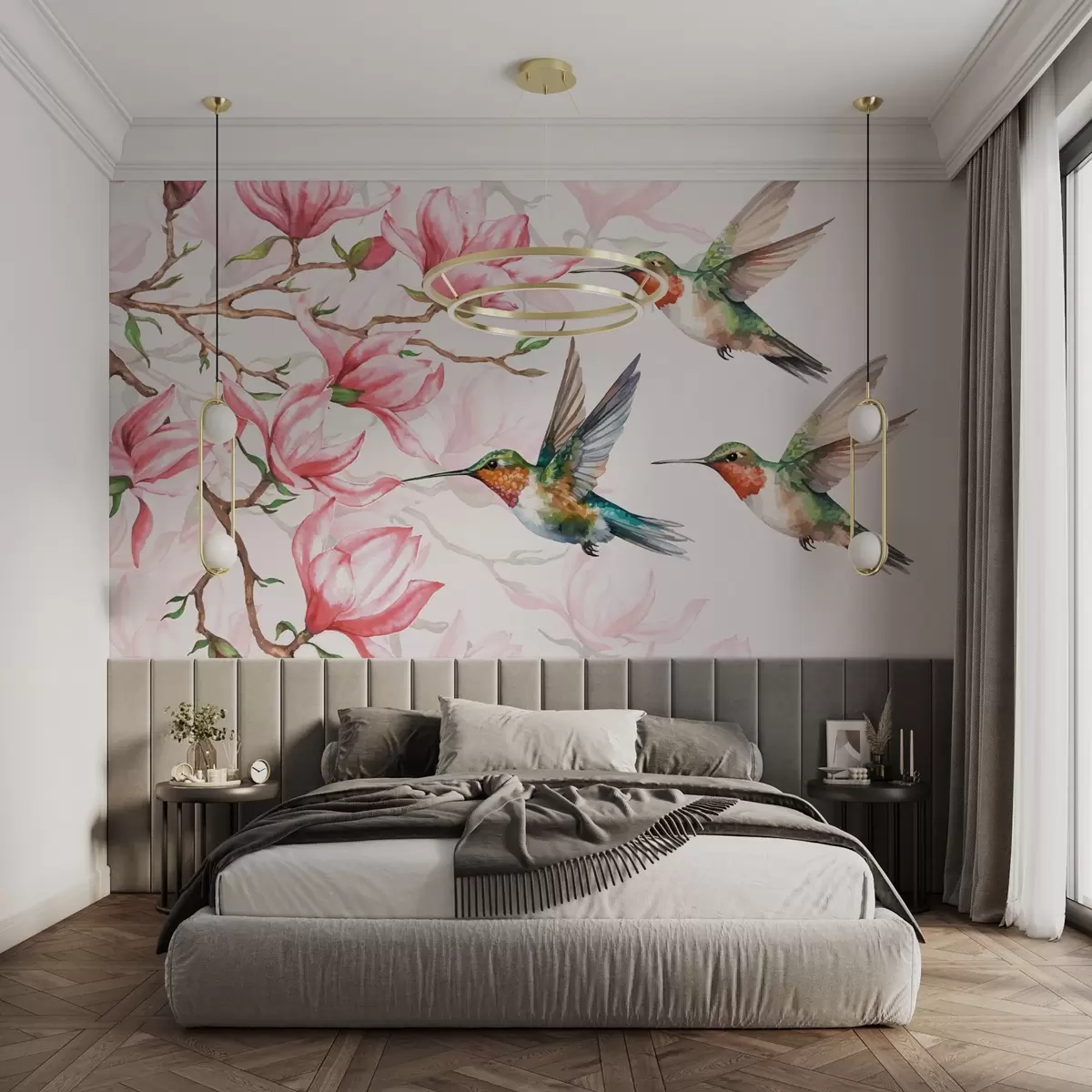 Stenske poslikave Cvetoče magnolije in kolibriji Št. w03104