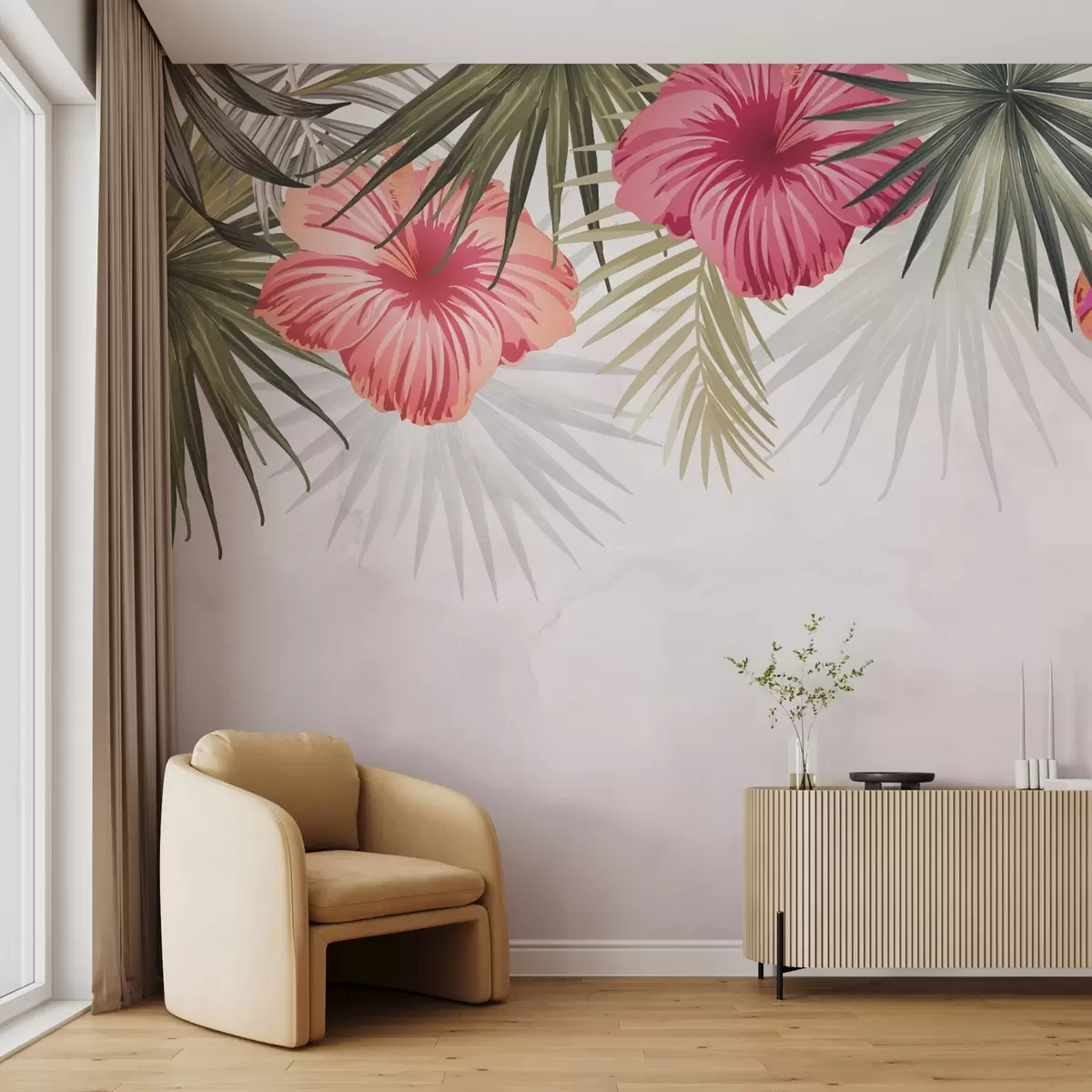 Stenske poslikave Tropski listi in cvetje od zgoraj Št. w03106