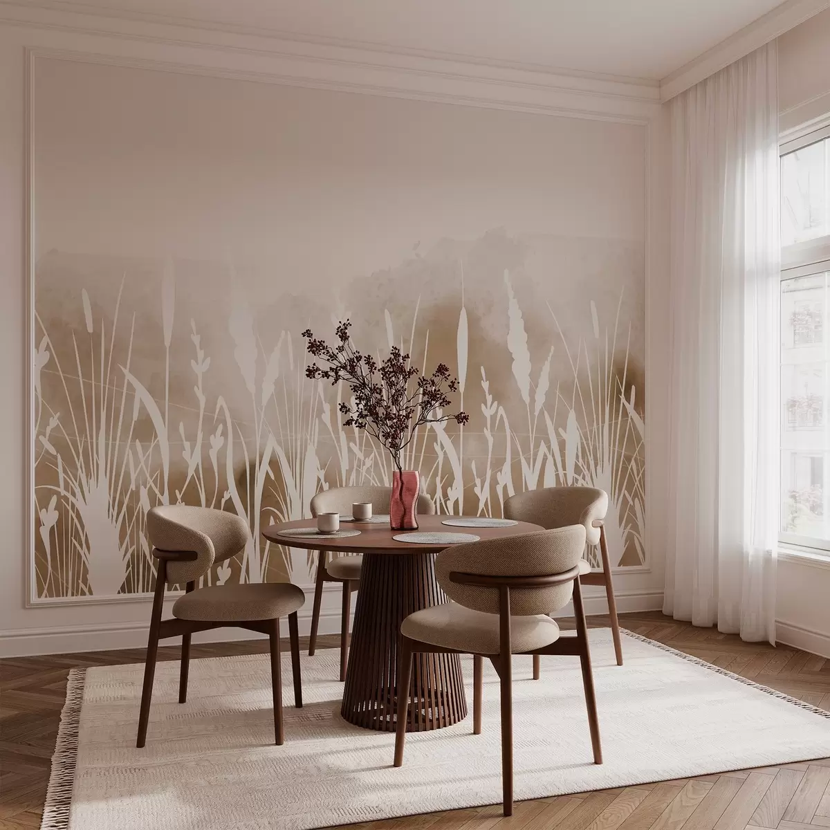 Stenske poslikave Silhuete travniških rastlin na svetlem ozadju Št. w03134