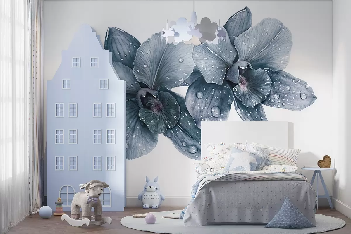 Stenske poslikave Lepe cvetove orhideje, akvarelni slog risbe, modre barve Št. w03164v2
