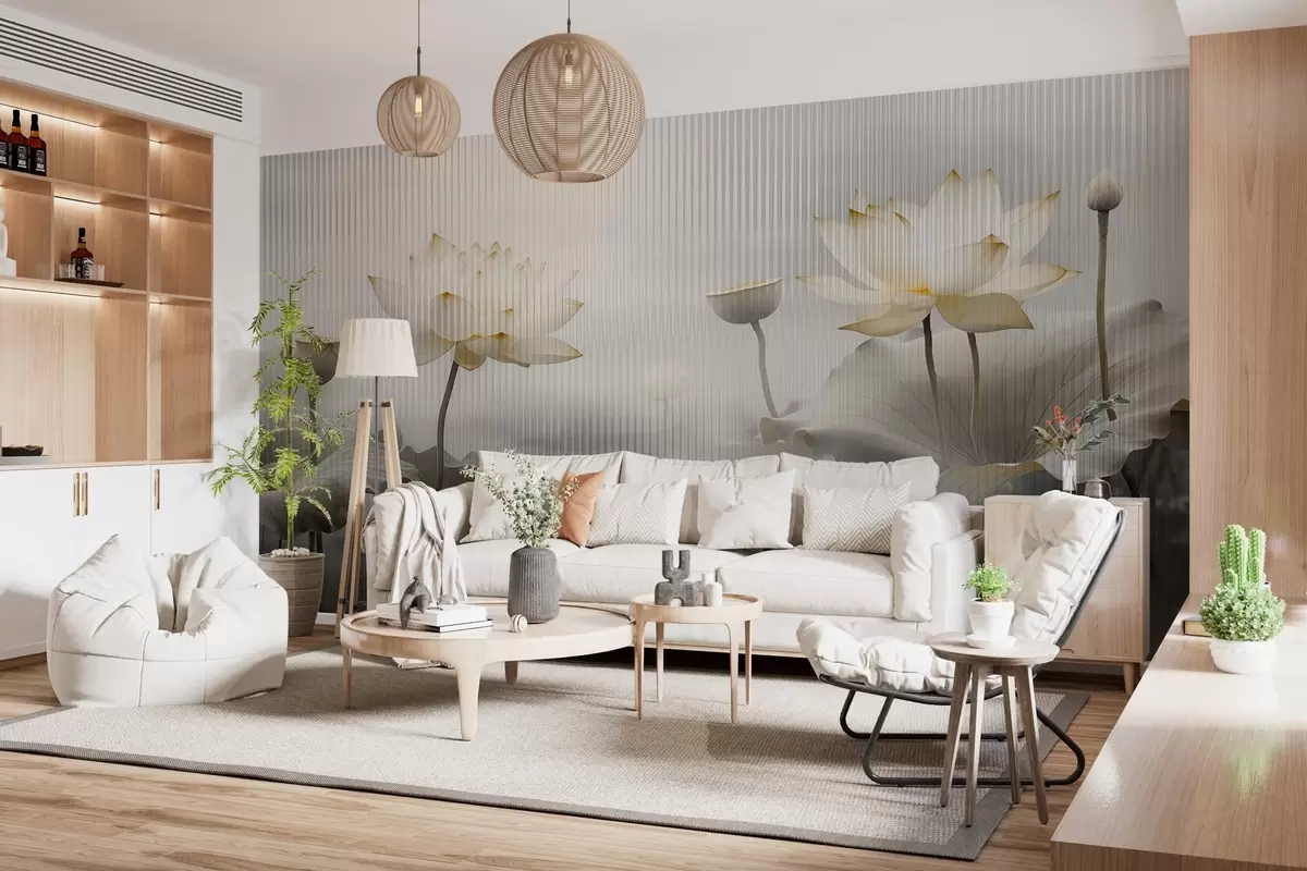 Stenske poslikave Pogled na lotuse za steklom Št. w03200v2