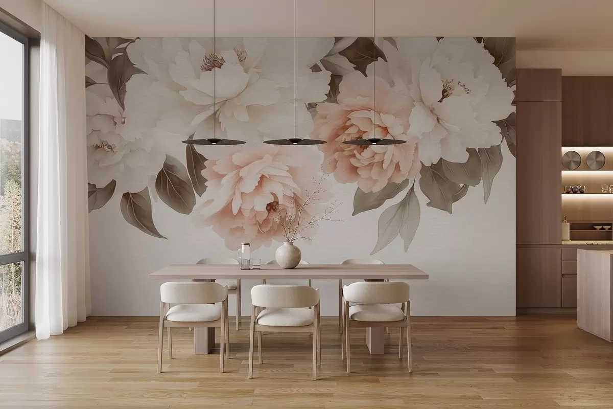 Stenske poslikave Nežne akvarelne vintage peonije Št. w03317