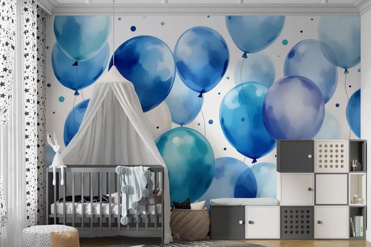 Stenske poslikave Modri zračni baloni, poslikani z akvarelom Št. w03330