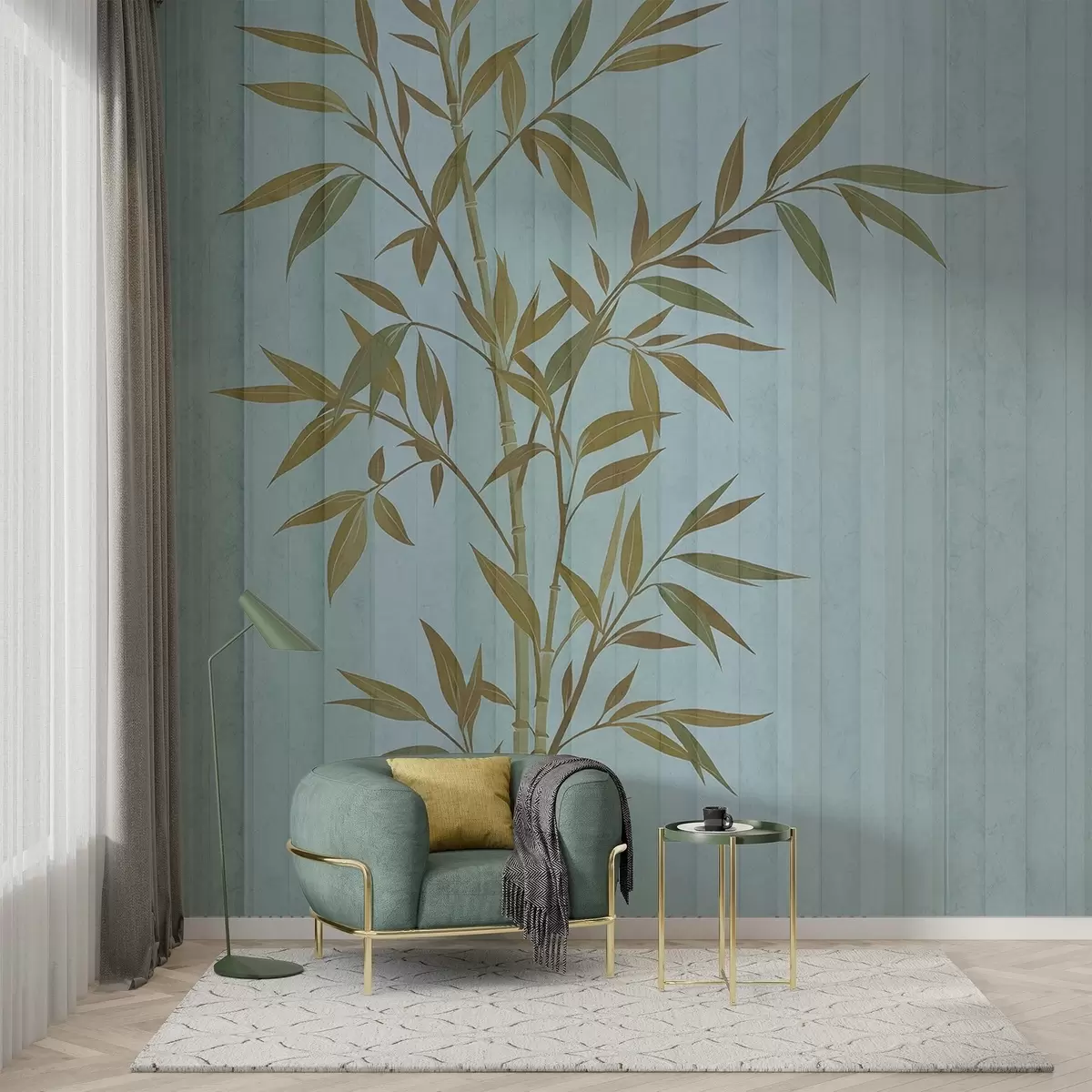 Stenske poslikave Poslikan bambus na grunge ozadju Št. w03337v2