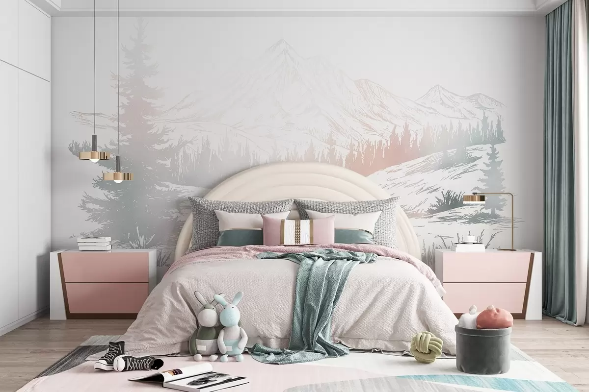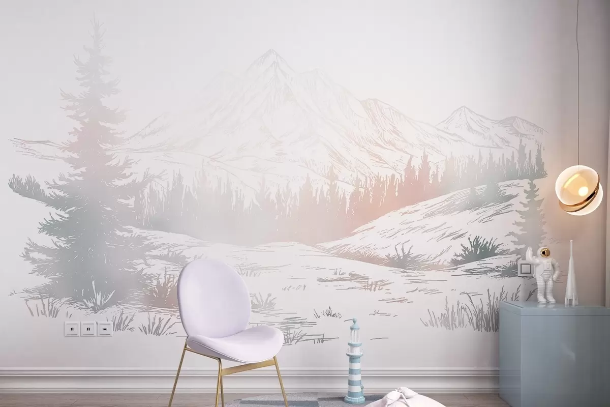 Stenske poslikave Gorska pokrajina z borovci, gozd, narava, barvita Št. w03344v4