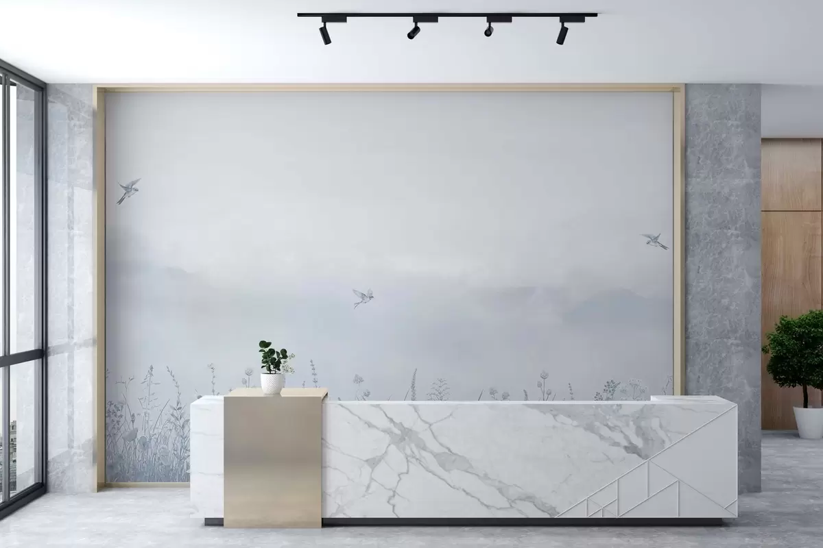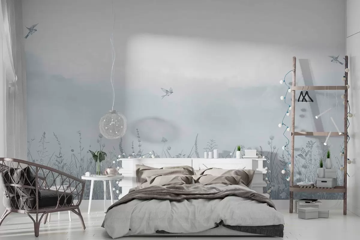 Stenske poslikave Divje cvetje in megleno nebo v modrih tonih Št. w03391v1
