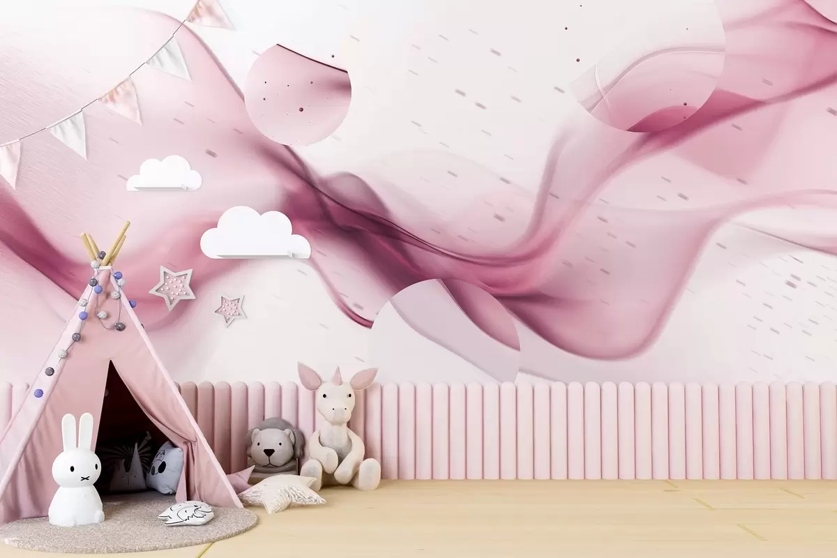 Stenske poslikave Geometrijski valovi abstrakcija, zamegljen slog, gradient, roza barve Št. w03404v1