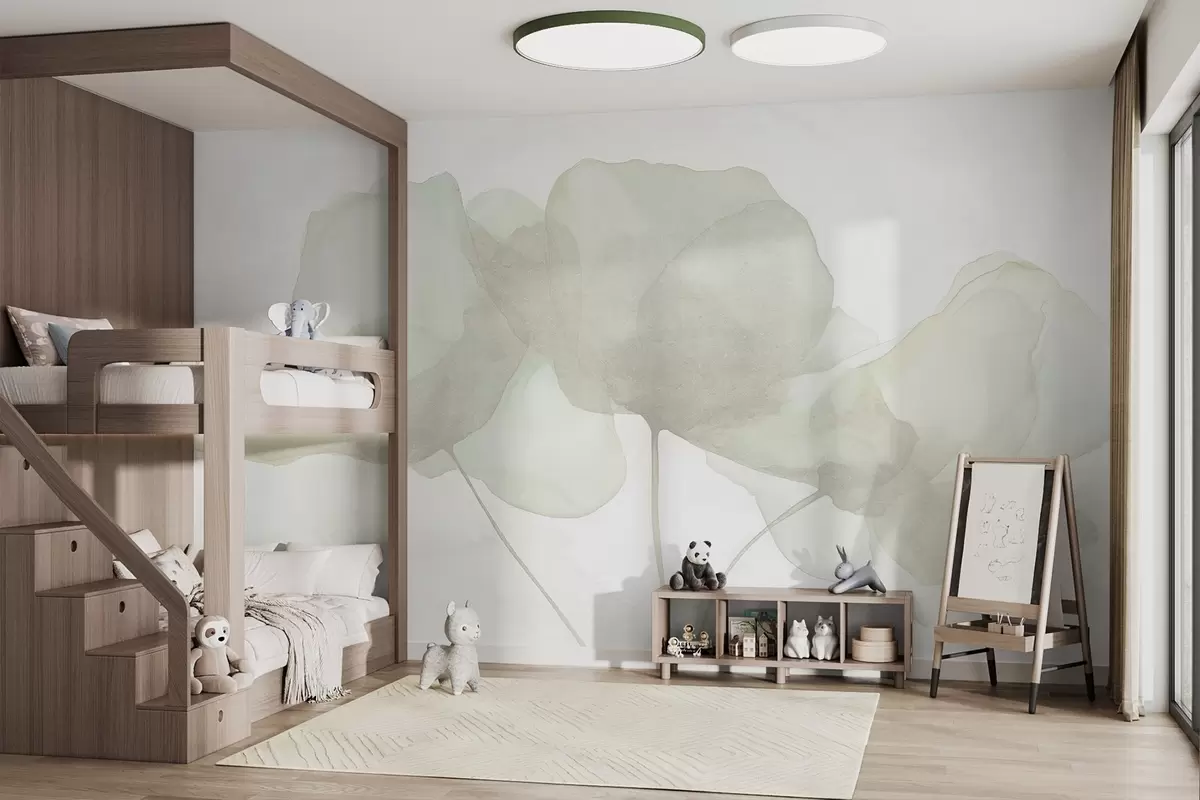 Stenske poslikave Lepo cvetje, mehka pastelna barva, minimalizem, naravno, rustikalno, bež in zeleno Št. w03407