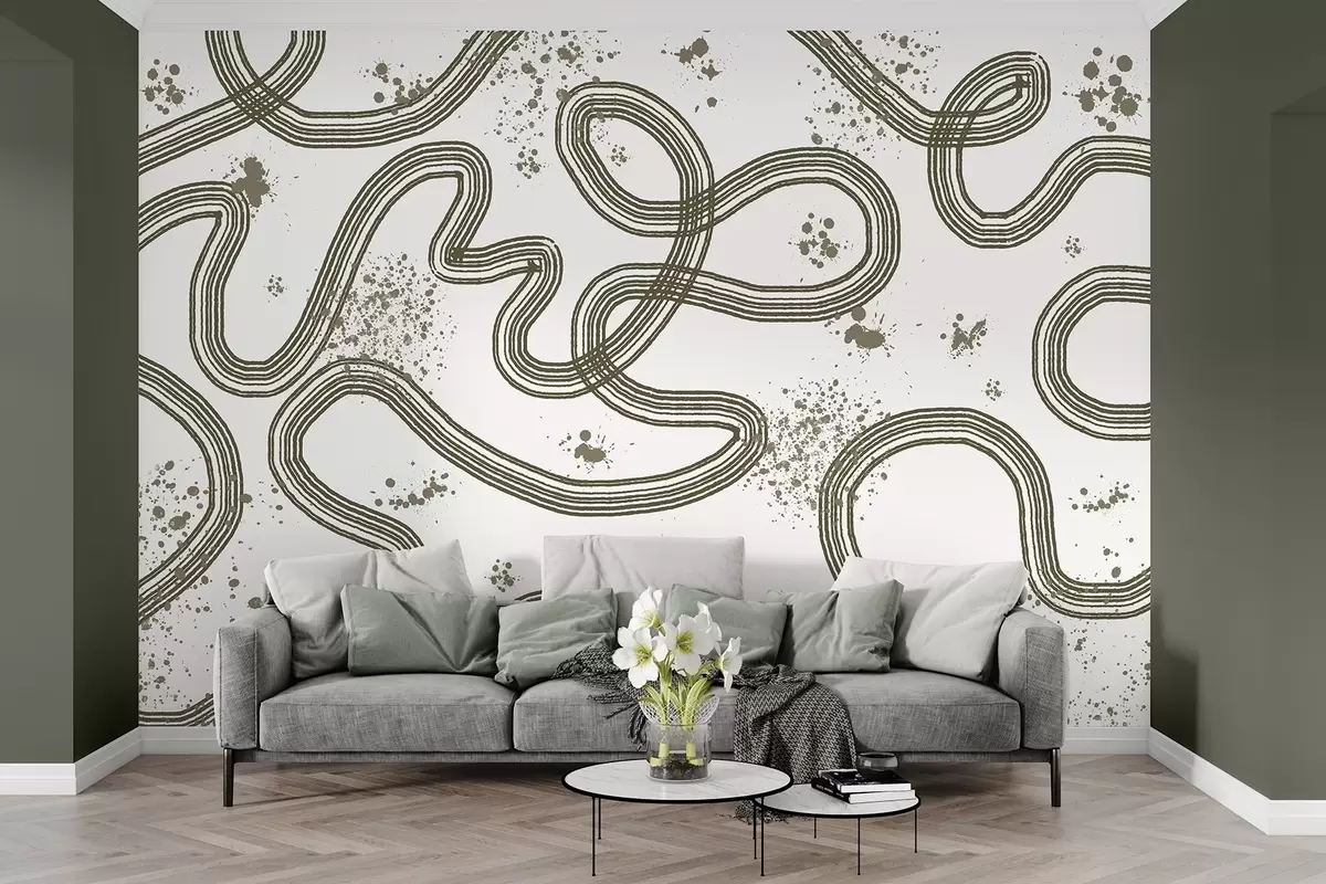 Stenske poslikave Črtna risba, brizganje barve, minimalizem, olivna barva Št. w03408