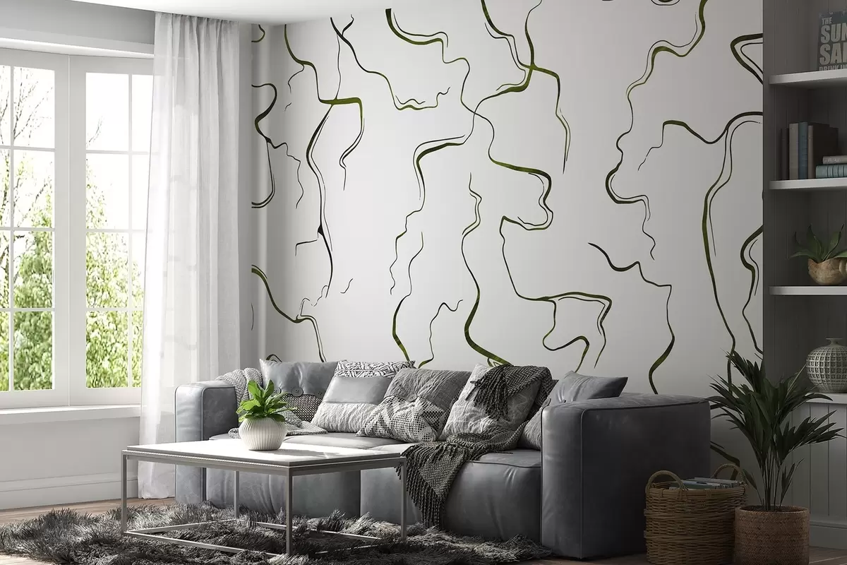Stenske poslikave Geometrijske linije, slog črnila, abstrakcija, zelene barve Št. w03436