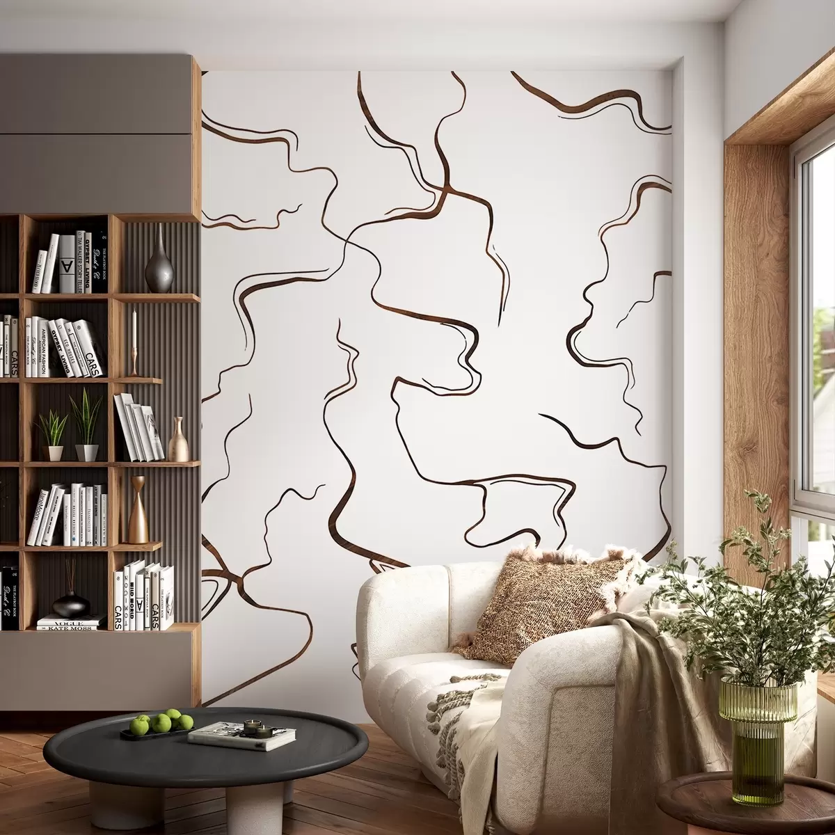 Stenske poslikave Geometrijske linije, slog črnila, abstrakcija, rjave barve Št. w03436v1
