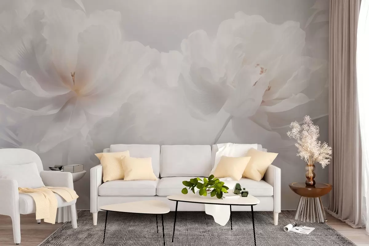 Stenske poslikave Cvetoče svetle rože na svetlem ozadju Št. w03443