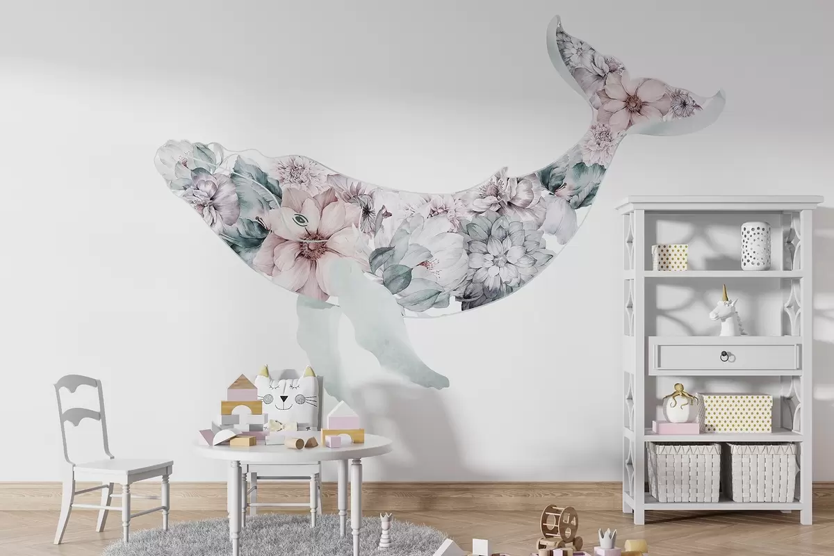 Stenske poslikave Lep kit z akvarelnim cvetjem, morske živali Št. w03445v1
