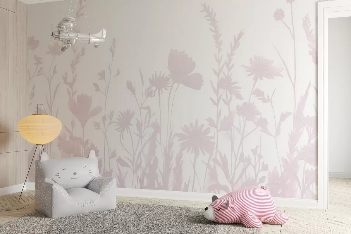 Stenske poslikave Poletni travnik, rustikalno, cvetje, rožnata barvna paleta Št. w03670v2