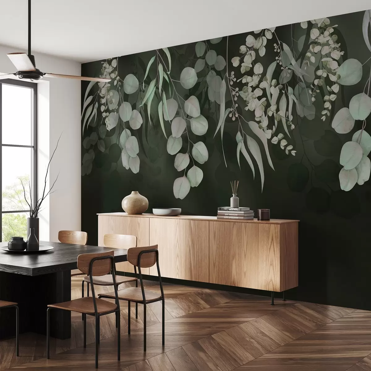 Stenske poslikave Tropski listi na temno zelenem ozadju, cvetlični Št. w03752