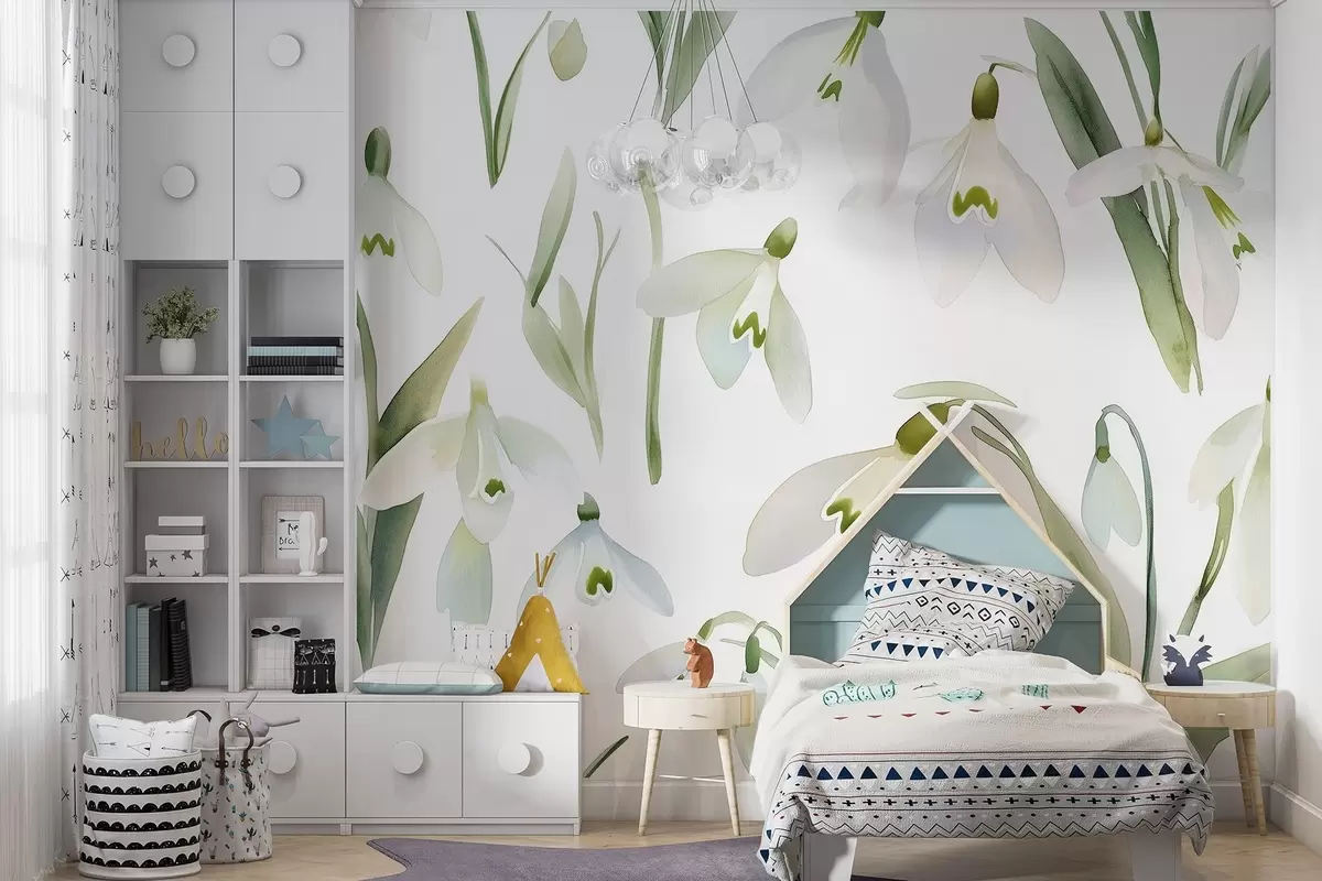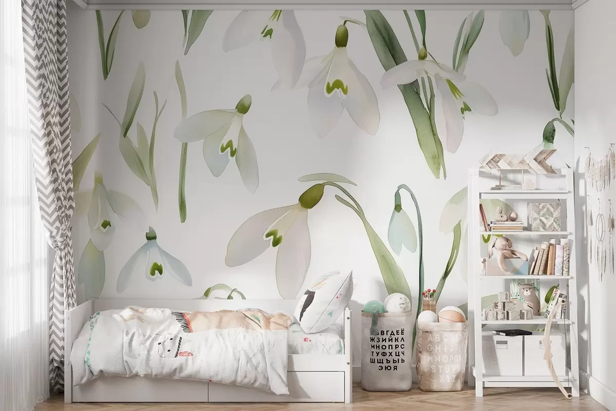 Stenske poslikave Cvetovi snežink v akvarelnem slogu, naravne barve Št. w03754