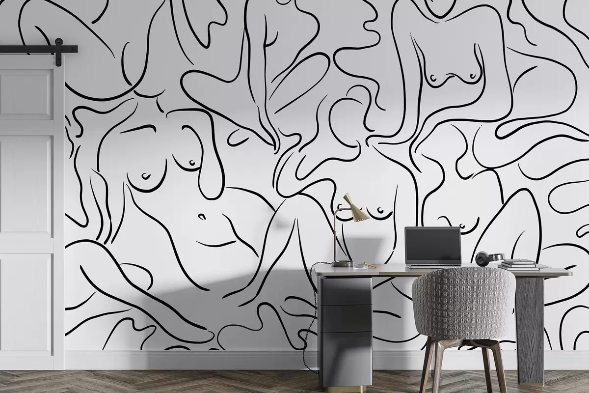 Stenske poslikave Črtna risba silhuete ženskih teles, abstrakcija, črna barva Št. w03755