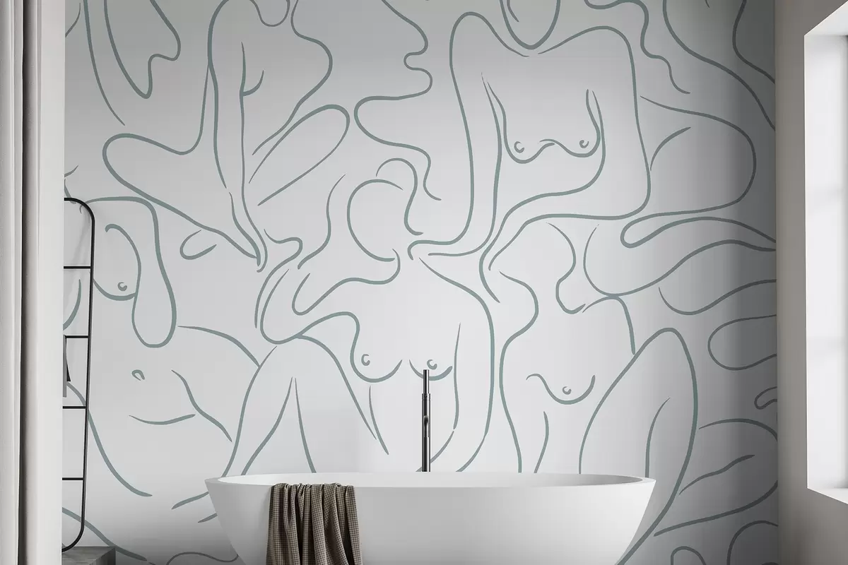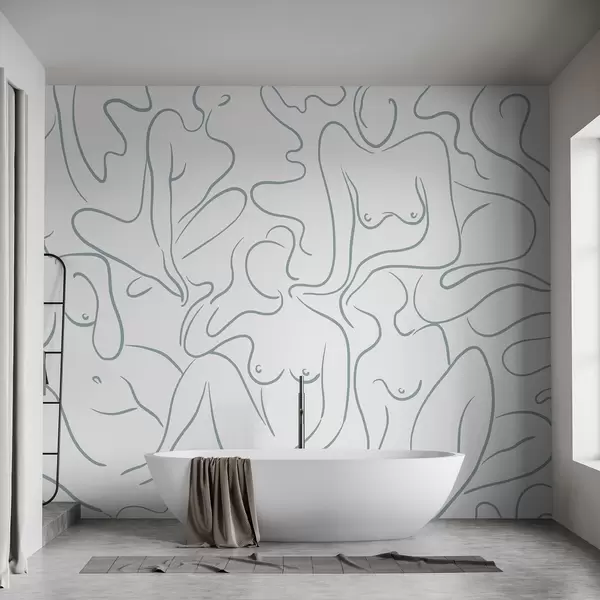 Stenske poslikave Linijska risba anatomske silhuete, abstrakcija, modra barva Št. w03755v1