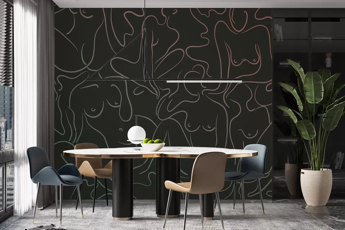 Stenske poslikave Črtna risba anatomskih silhuet, abstrakcija, temno ozadje Št. w03755v2