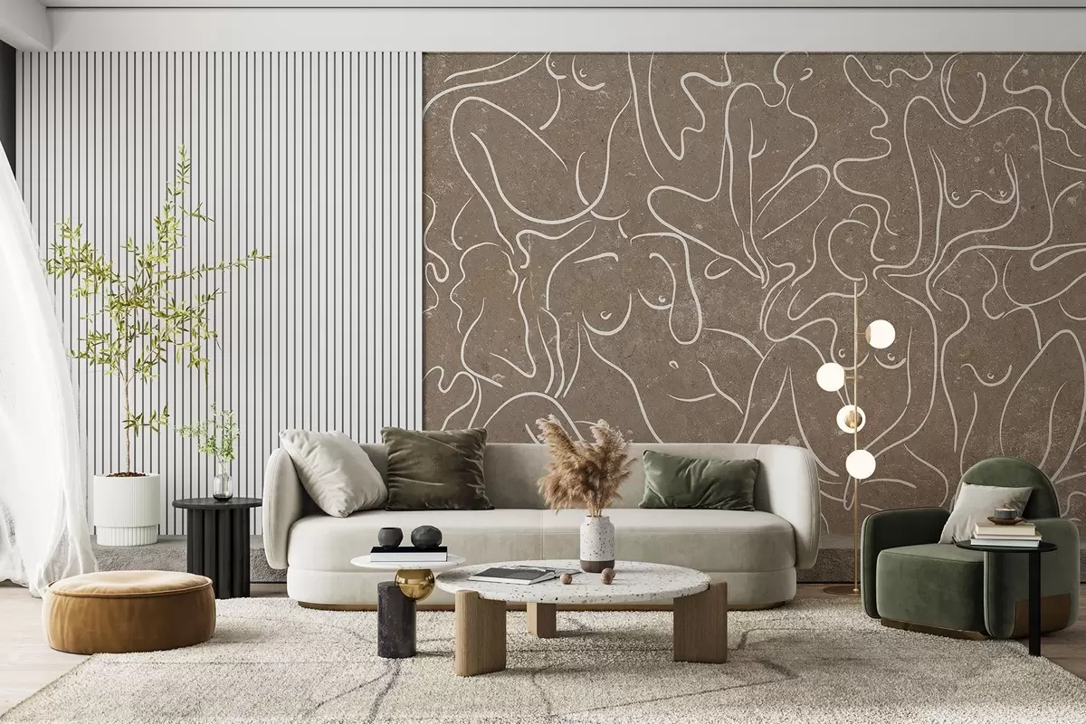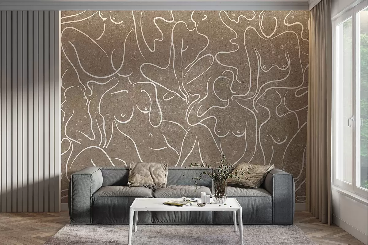 Stenske poslikave Črtna risba anatomskih silhuet, abstrakcija, bež ozadje Št. w03756