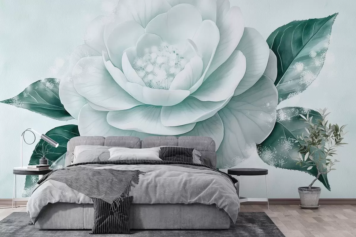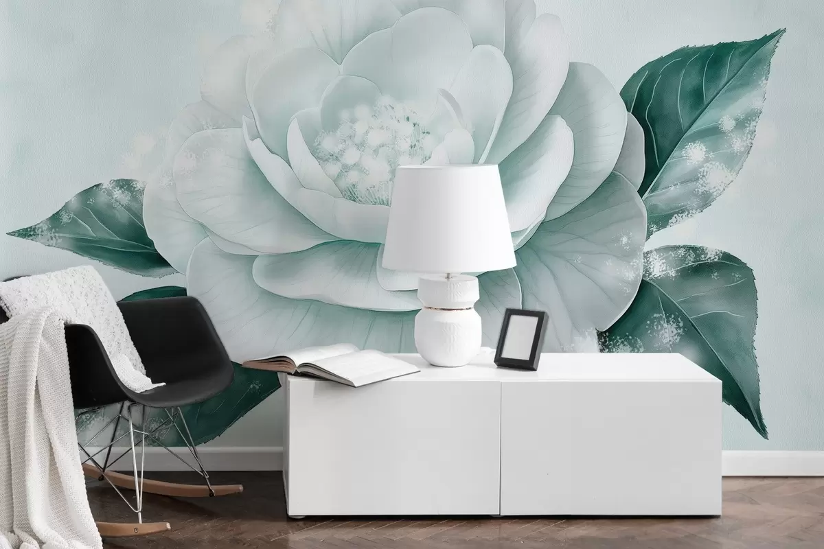Stenske poslikave Lep cvet pivonke v modrih barvah Št. w03757v1