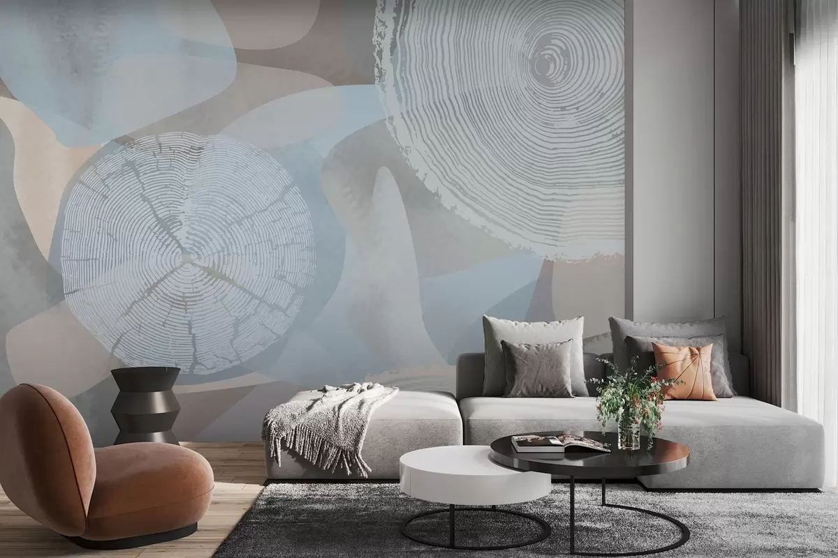 Stenske poslikave sodobne abstraktne oblike in letni drevesni obročki Št. w03769