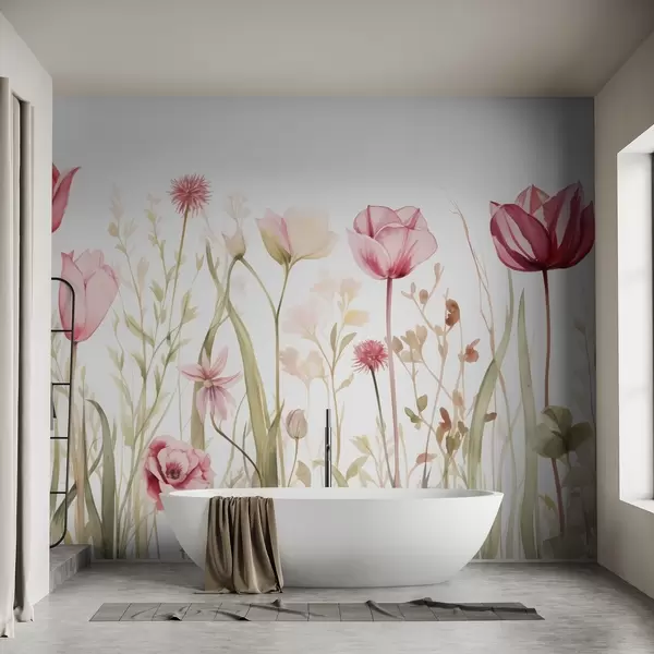 Stenske poslikave Mehkoba travnika,Tulipani, cvetje, stebla, listi, divje rastline Št. w03785