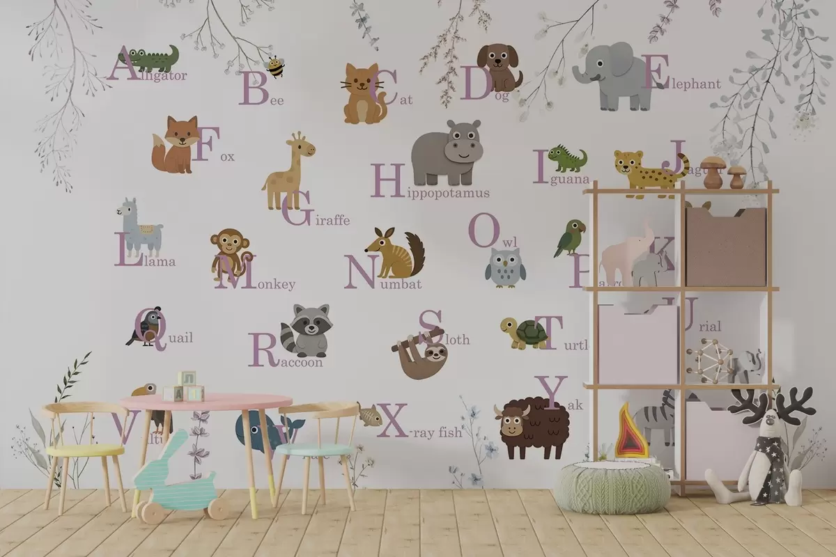 Stenske poslikave Minimalistična abeceda z rožnatimi črkami Št. w03808v1