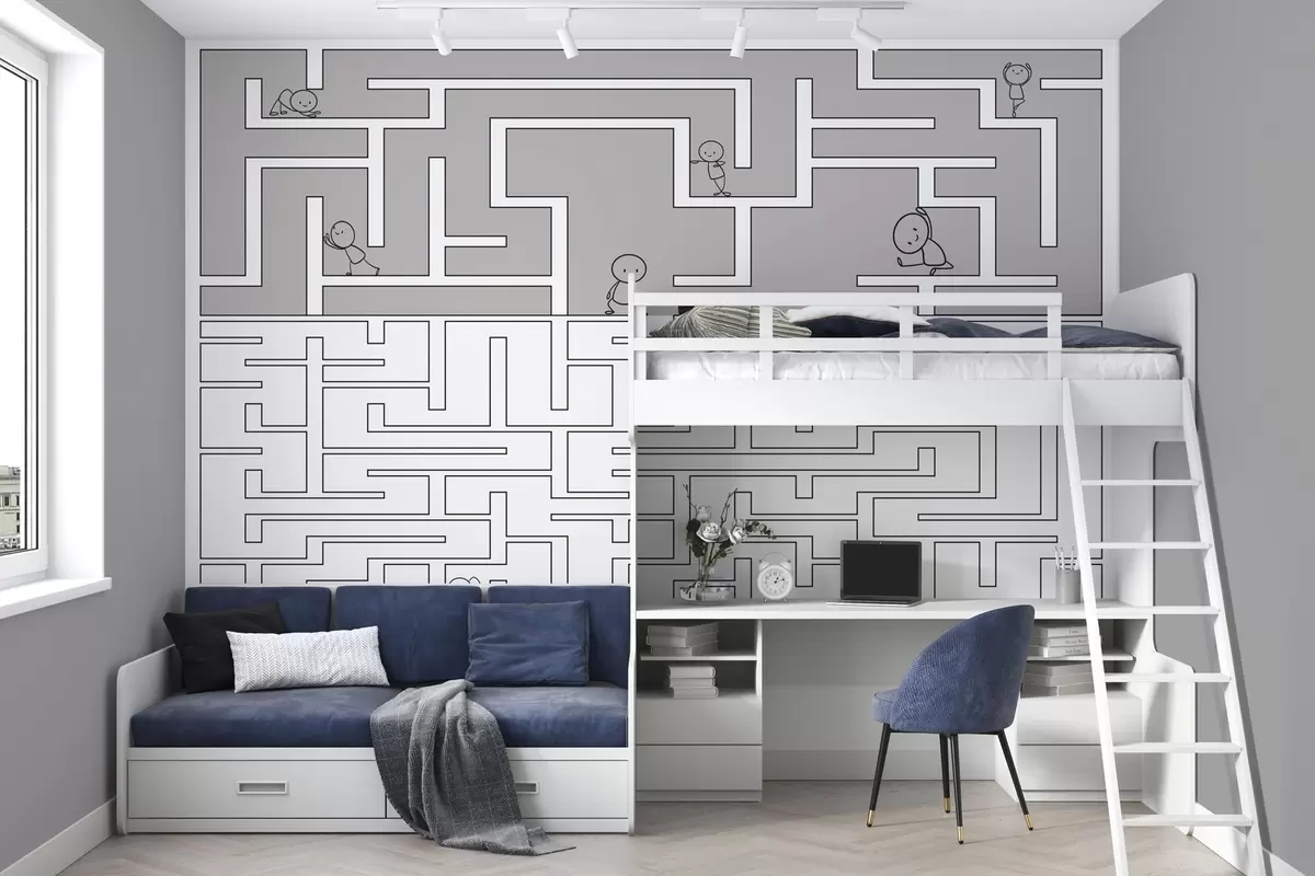 Stenske poslikave Labirint v sivi in beli barvi Št. w03873v1